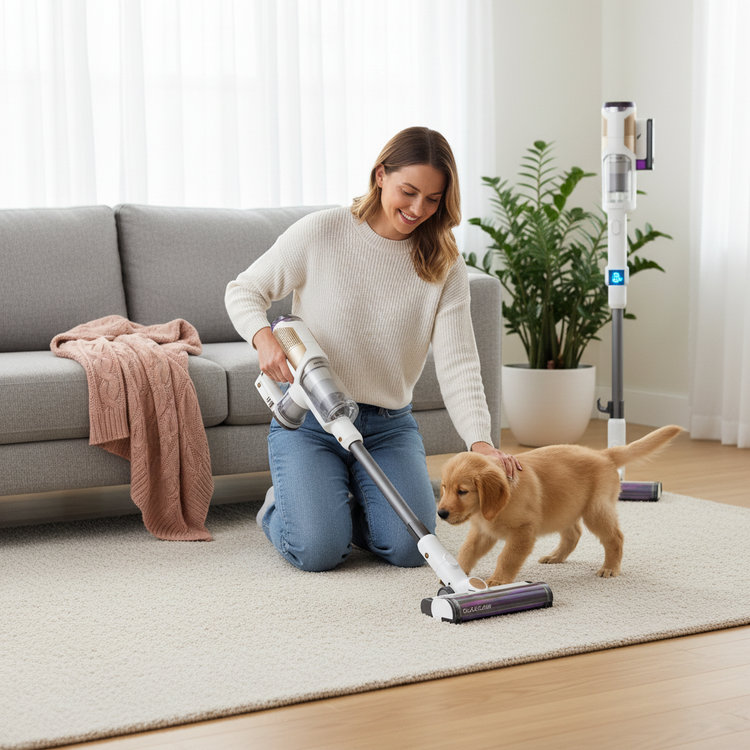 Our two dogs shed plenty, but Steam Shark handles pet hair like a champ. The self-cleaning brushroll angles under furniture and makes weekend chores a breeze. Highly recommend for any pet household!